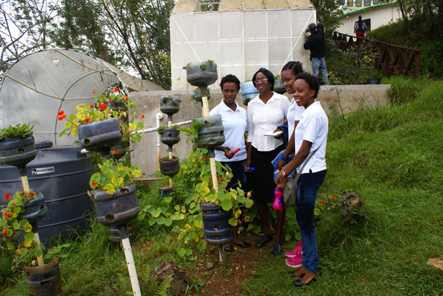 Students visited the Wynne Farm Nature Reserve in Kenscoff and saw firsthand, composting methods, vertical planting, and different planting techniques. They also saw alternative environmentally friendly buildings, one made from Bamboo, one from recycled styrofoam plates and one from earth filled bags used in place of bricks. There were also endangered species of plants and birds.