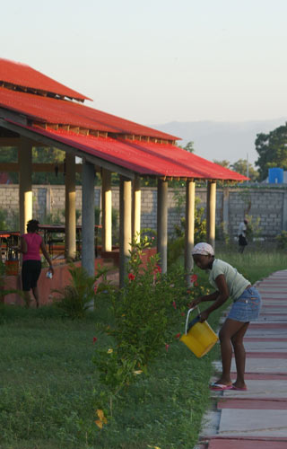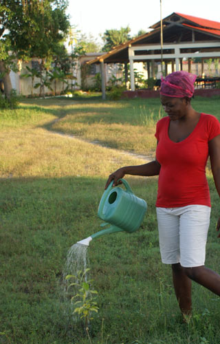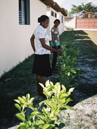 Trois heures plus tard, j’arrive au Centre Montessori d’Haïti et mon désespoir commence à s’apaiser alors que j’entre dans un environnement tout à fait différent. Je dois rencontrer le personnel. Nous planifions le programme de l’école pour l’année, et par la suite, la conversation se pose sur le séisme et les obstacles à la construction du centre. L’un des enseignants discute de la croissance des arbres que nous avons plantés. »Prenons une photo.« Elle se tient près des citrus et je prends la photo. Ma frustration diminue un peu plus.